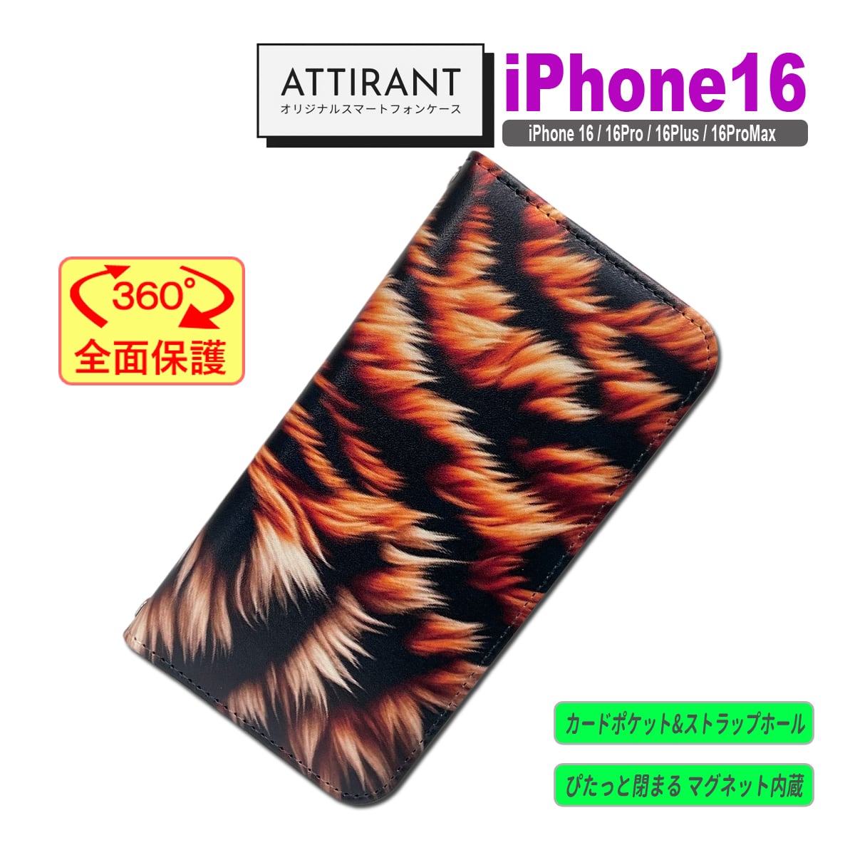 iPhone 16 ケース 手帳型 カバー 16 16 Pro Plus ProMax 16e 虎 トラ タイガー 虎柄 アイフォンケース