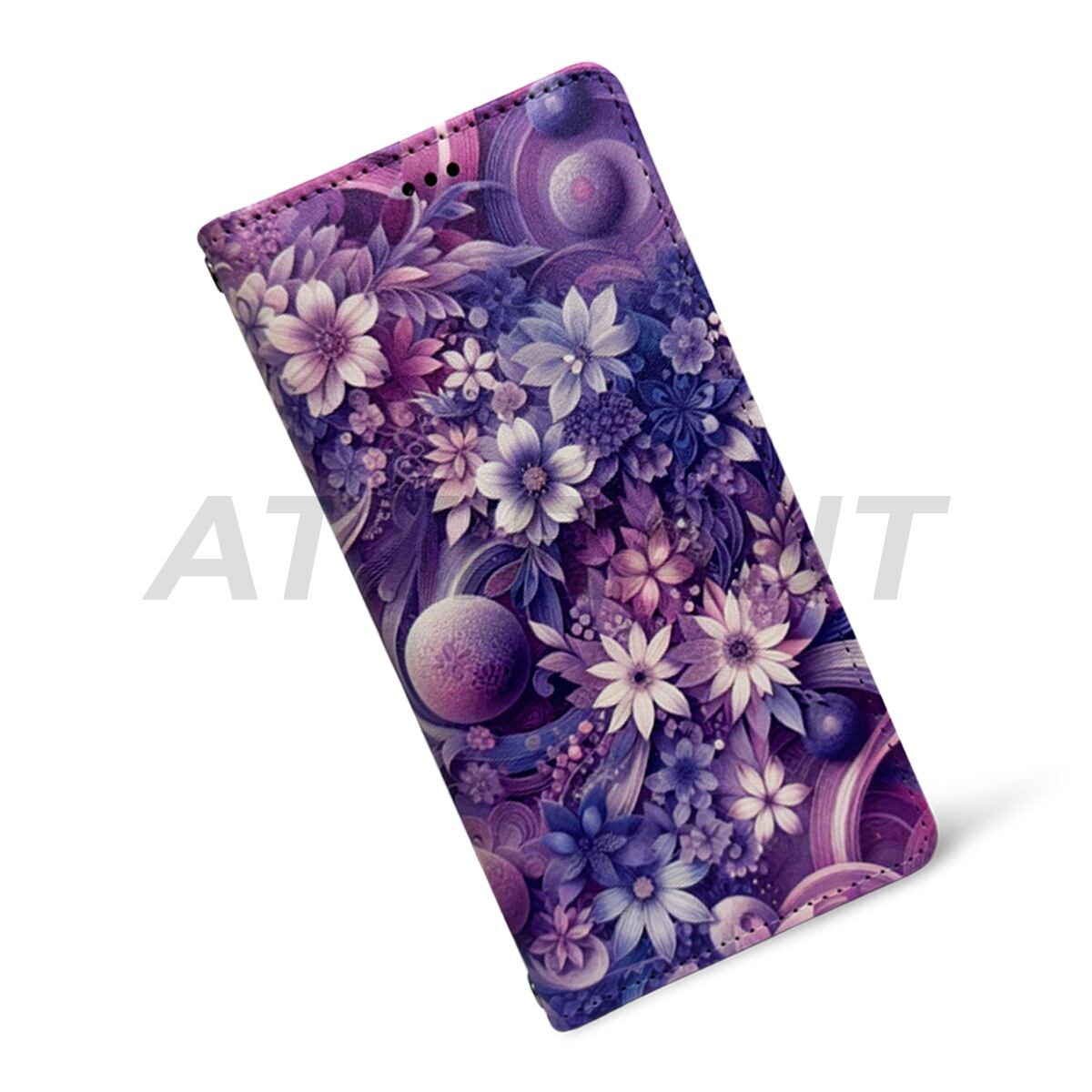 iPhone 15 ケース 手帳型 カバー 15 15 Pro Plus ProMax 花柄 紫 パープル かわいい オシャレ アイフォンケース